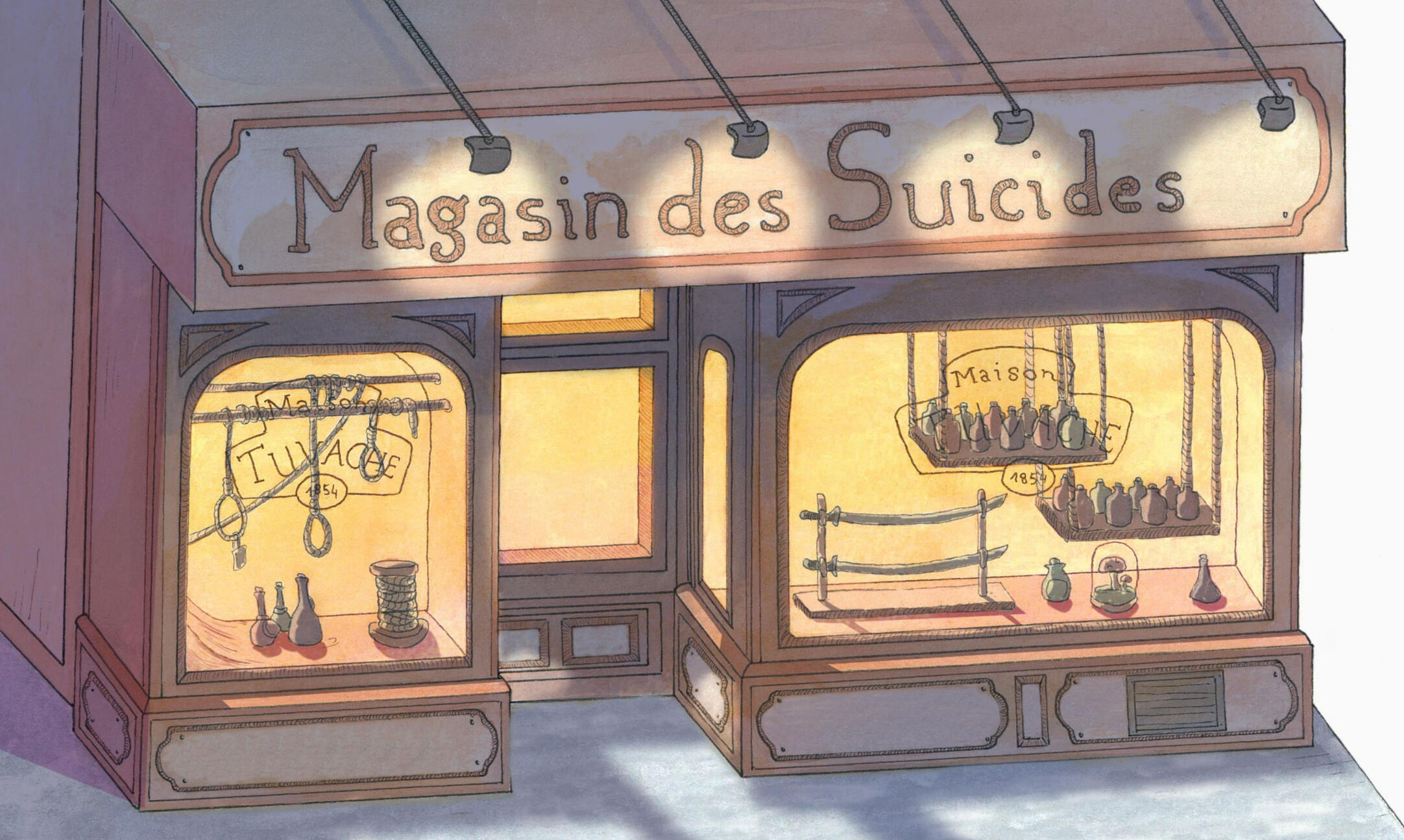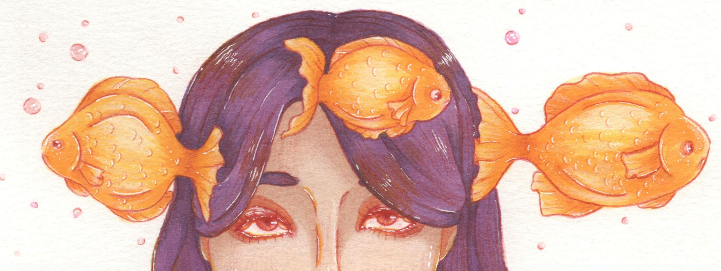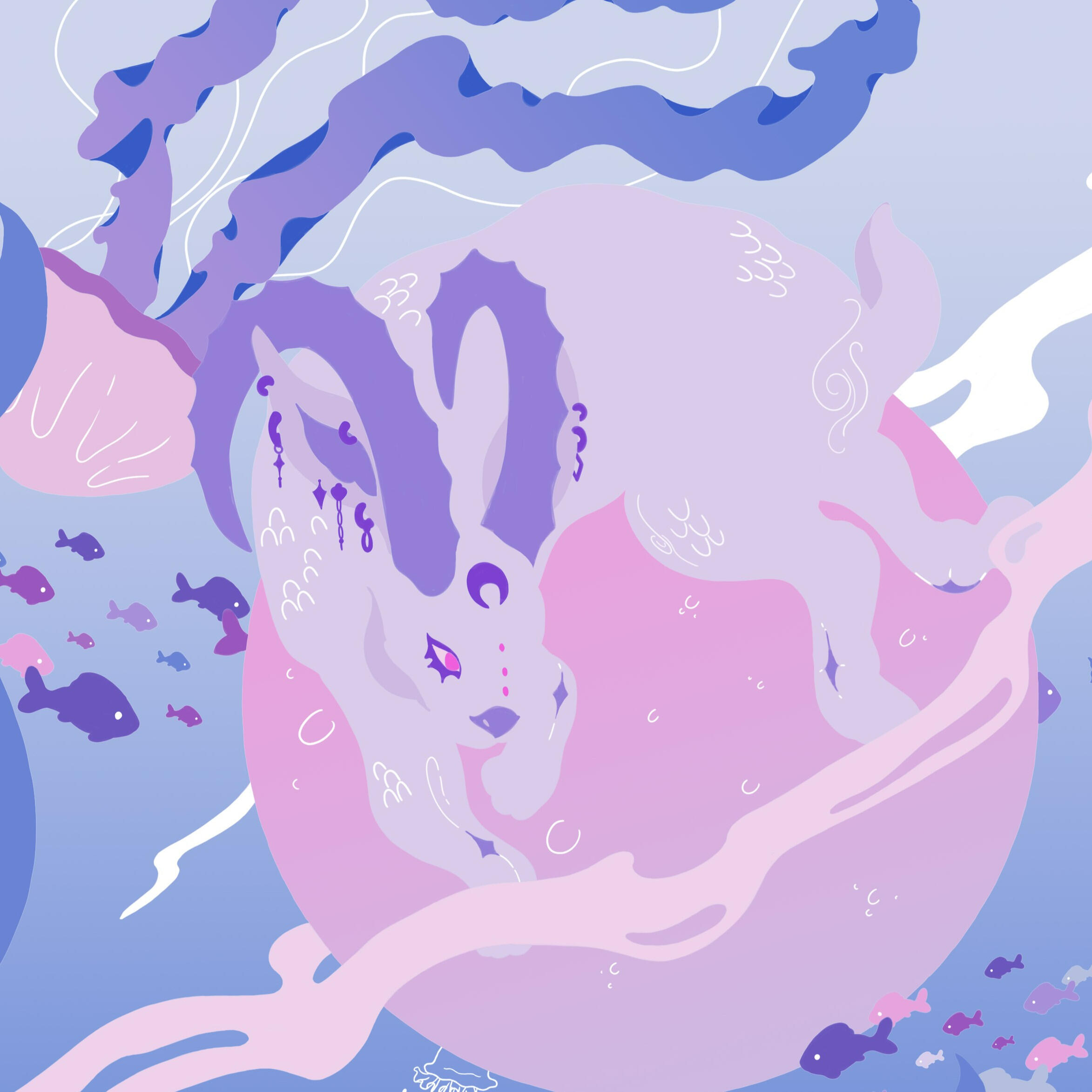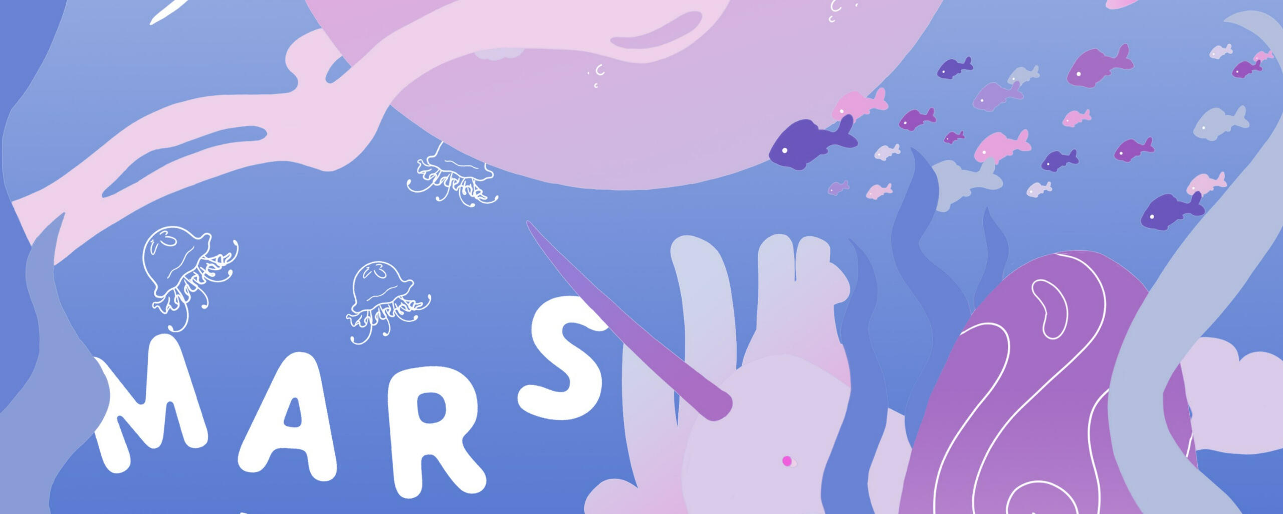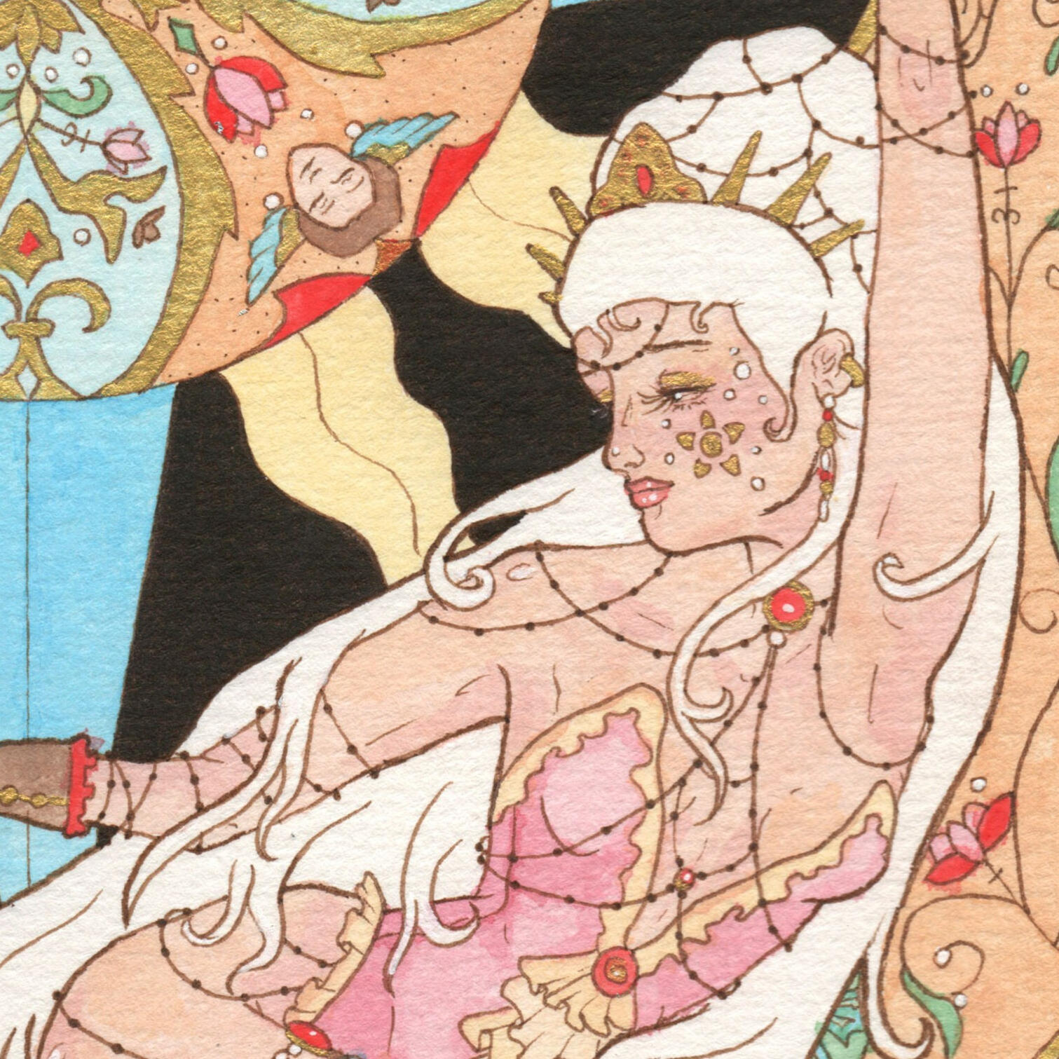 Comic strip of a dancer from a theatre turning into a jellyfish floating in the sea.