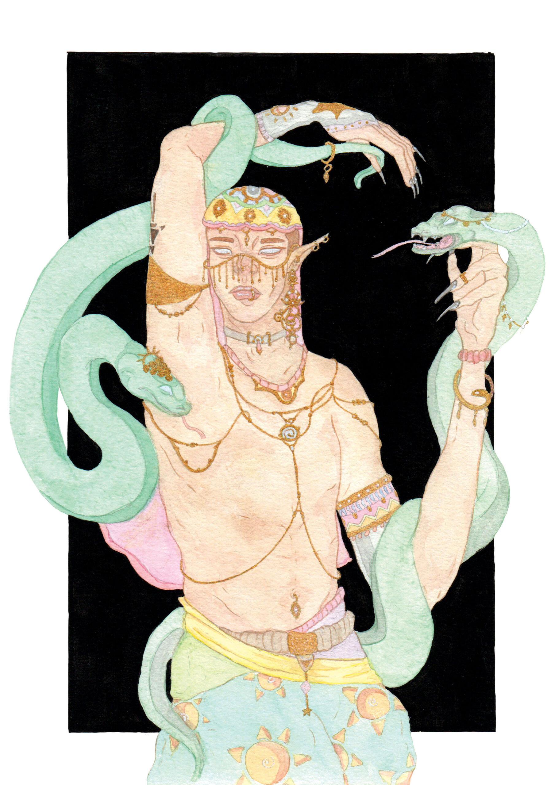 Character design of a creature of a freak show. Inspired by the steampunk aesthetics and ballet dancers.